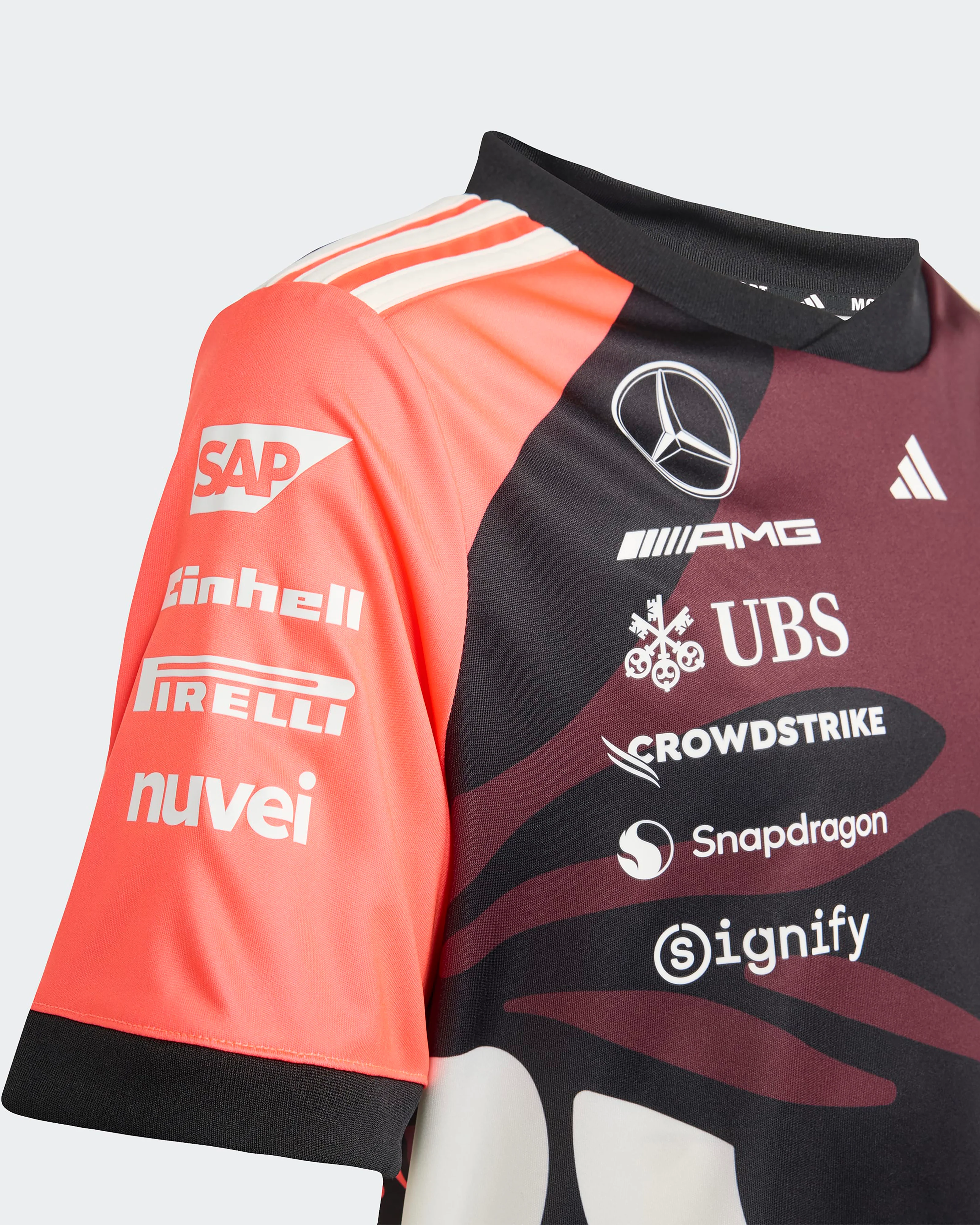 They can feel the rush of race day with this Mercedes - AMG Petronas Formula One Team driver replica jersey for kids from adidas Motorsport. Inspired by the kit worn by their favourite drivers, this short sleeve jersey blends performance and comfort. AEROREADY manages moisture to keep them cool even as the action heats up. Mercedes - AMG Petronas Formula One Team logos and sponsor logos make the look official.