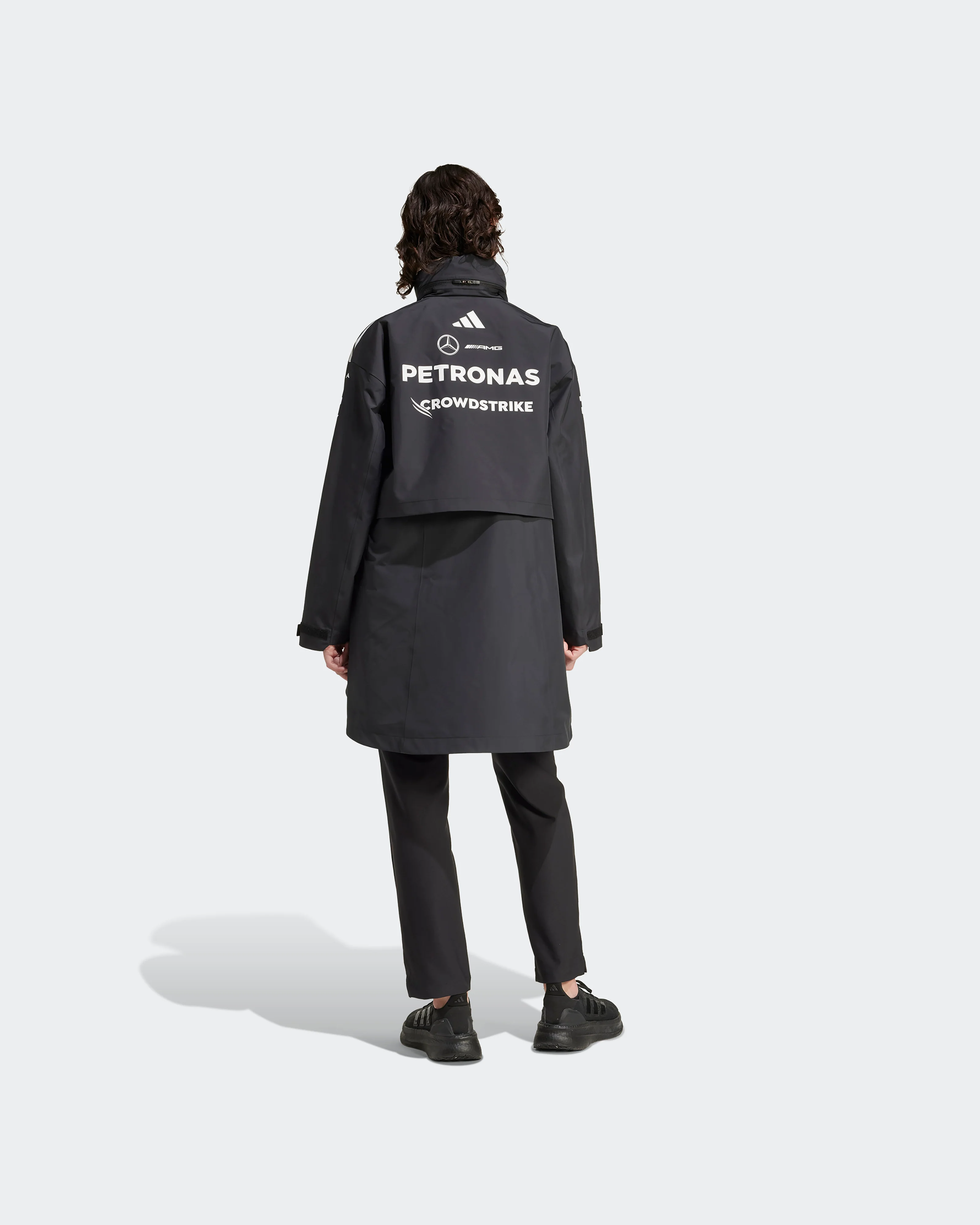 Experience the thrill of the track with the Mercedes - AMG Petronas Formula One Team Team MYSHELTER jacket from adidas Motorsport. As the official team gear of the team, this jacket lets you feel like part of the crew. Hook-and-loop straps on the cuffs help you adjust the fit, while the iconic Mercedes and Petronas logos put your fandom on full display. A packable hood elevates coverage for nasty weather. Wherever you wear it, you'll feel like part of the Mercedes-AMG Petronas Formula One team.